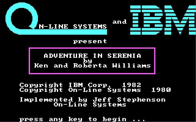 Adventure in Serenia is a port of Wizard and the Princess for the IBM PC, and it was released by On-Line Systems in 1982.