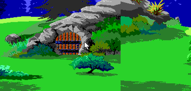 The Door into Mountain was a huge wooden door built into the base of a steep mountain in Daventry, leading into the cave system behind it and up to the Land of the Clouds.