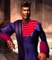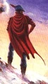 On an alternate KQ5 box he is shown wearing a red cape (instead of the blue cloak seen in the game).