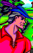 Note: One feature added into KQ5 is Graham's ability to move his head in three directions. Special sprites were created for each angle, and not simply 'mirror' image of him looking right or left. This means the feather always remains on the right side of his head. Even sideways, special sprites were drawn to place the feather on the correct side of his head. In previous games, Graham sideways sprites were just a flipped image.