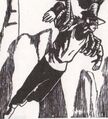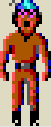 However, his standard adventuring sprites show elements of buffness from fairly broad and thickened trapezius muscles over his shoulders (portrayed with four extra red pixels, two on each side of his neck) to his thick back muscles (from the trapezius and rhomboid regions giving an almost 'hunchback' back appearance from the side views). His muscled chest is focused on in the zombie death sprite animation. In KQ1AGI, he is even described as being '...very strong and healthy...'.