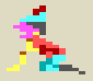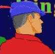 On CGA monitors in the RGB mode Graham's colors his shirt appears as if he had red and yellow/orange verticle stripes. He appears to wear yellow and green striped pants and hat. Graham himself has a nice golden tan (somewhat similar to the KQ2 box see below).
