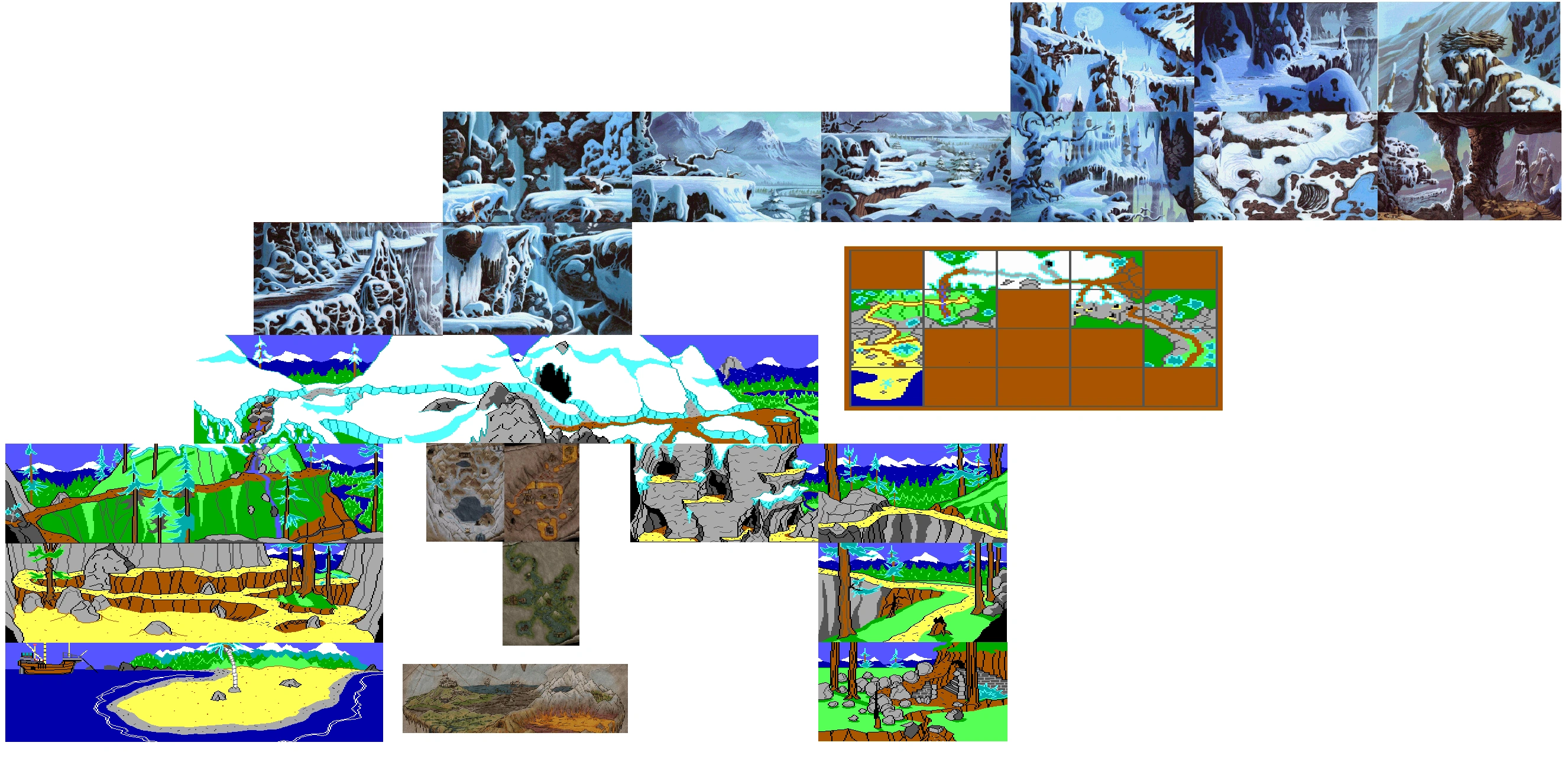 - ↑ "You have made the very top of the snowy mountain range. The snow path ends here at a cliff. Far in the distance, you can see a vast green valley. \"Could it be Daventry?\" you wonder. Your excitement mounts."