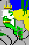 He is tall and imposing, with a flowing robe and long greenish-gray beard. A crown fashioned of shells and pearls adorns his head. He is the leading member the merfolk living near Neptune's Kingdom.
