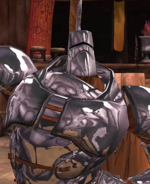Whisper is always seen in his suit of armor with his iconic "shiny biscuits", his mane of excellence, and his red-orange cape. By the time of Alexander's return, Whisper has maintained his physique and armor, although he appears without his cape.